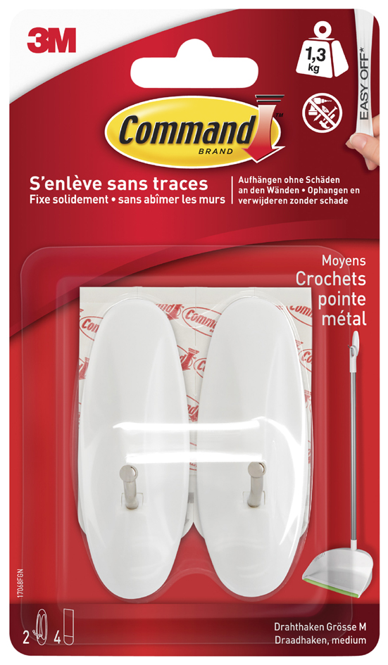 3M Command Draht-Haken, Kunststoff/Metall, weiß, Größe: M
