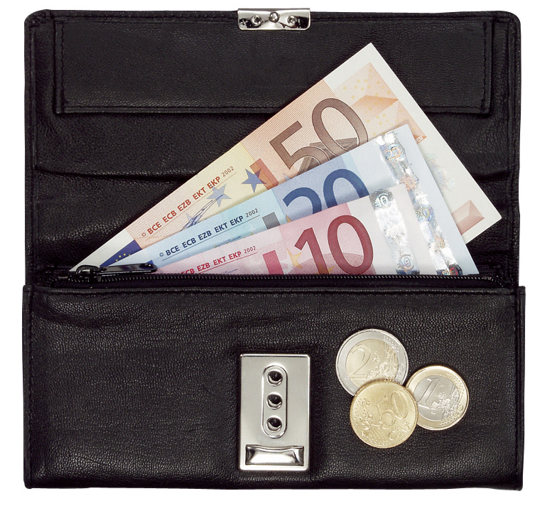 5 Scheinfächer, Münzfach, Reißverschlussfach, Klarsichtfach