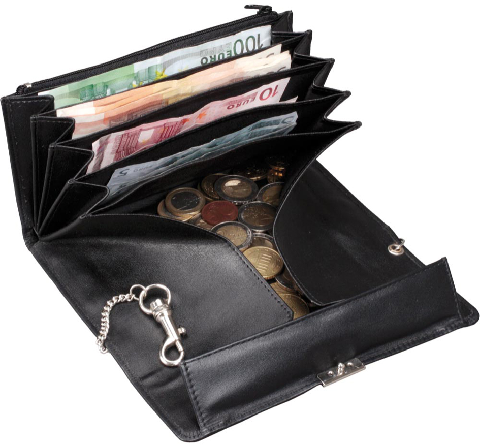 6 Scheinfächer, Münzfach, Reißverschlussfach,