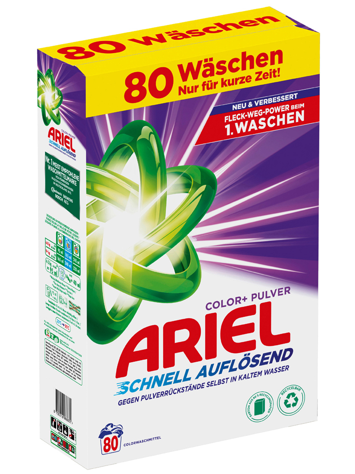 • ausgezeichnete Fleckentfernung beim 1. Waschen selbst in kaltem Wasser