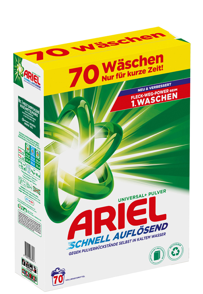 • ausgezeichnete Fleckentfernung beim 1. Waschen selbst in kaltem Wasser