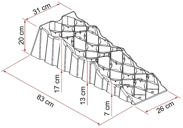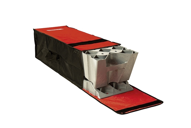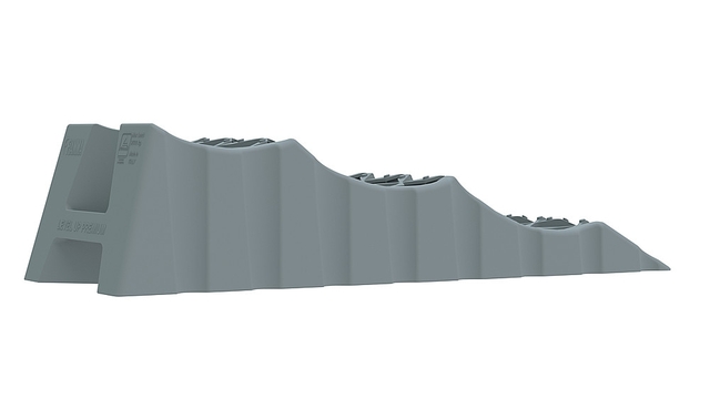 Der neue Stufenkeil mit drei Stufen auf 7, 13 und 17 cm Höhe. Das Verhältnis der Kontaktfläche mit dem Untergrund zu der mit dem Reifen garantiert optimale Leistung auf instabilem Gelände. Die große Auflagefläche und die speziell geformten Stufen schützen den Reifen vor Verformung. Die neue, überarbeitete Struktur ist auf eine hohe Traglast und Anpassungsfähigkeit des Produkts an unebenes Gelände ausgelegt. Trotz seiner üppigeren Maße lässt sich der Stufenkeil mit dem praktischen Handgriff auf der Rückseite bequem transportieren. Dieses Stufenkeilsystem ist im Gegensatz zu vergleichbaren Produkten besonders leicht und zeichnet sich durch seine hervorragende Leistung auf jedem Untergrund aus. Die serienmäßig enthaltene, praktische Tragetasche Level Bag Premium ermöglicht ein einfaches Verstauen und Aufbewahren des Produkts.