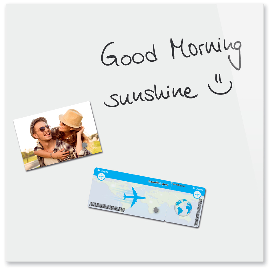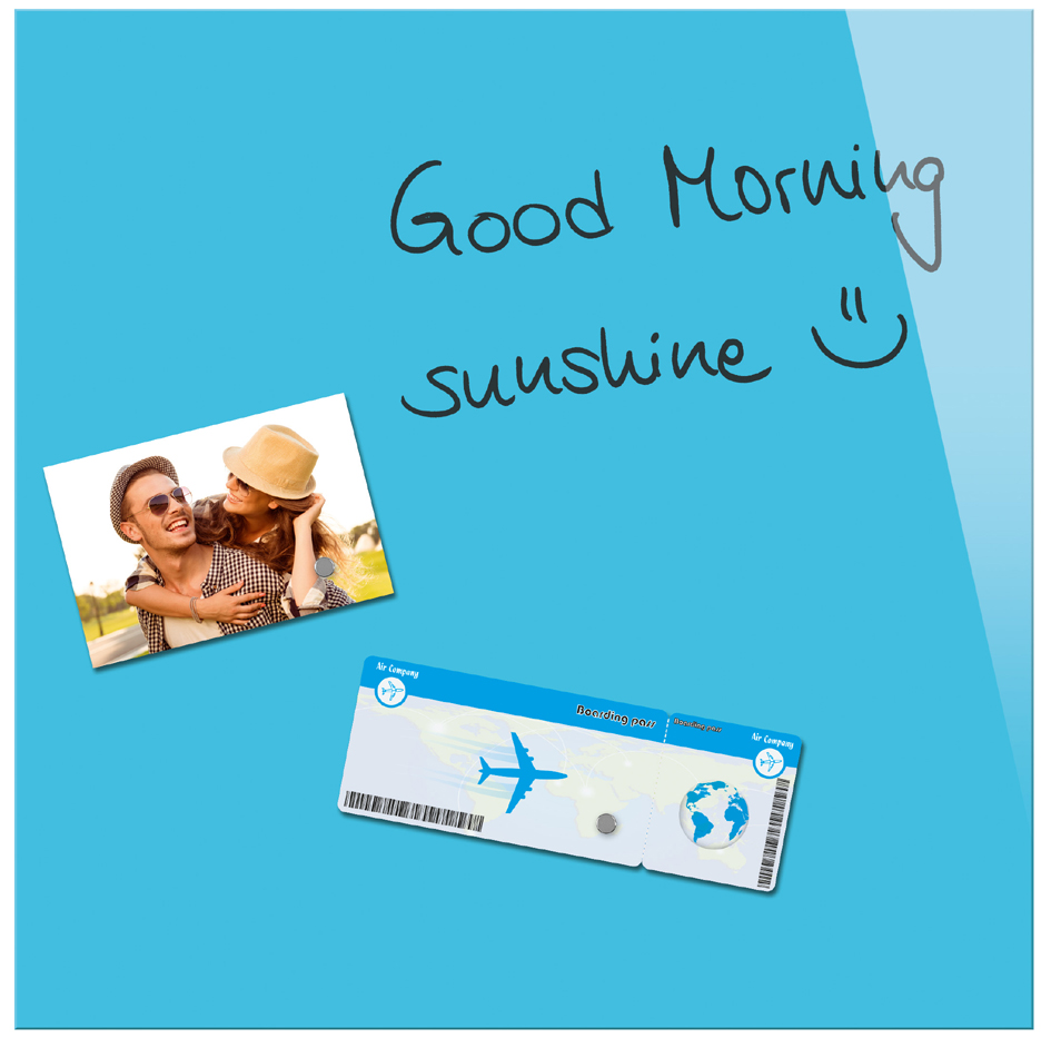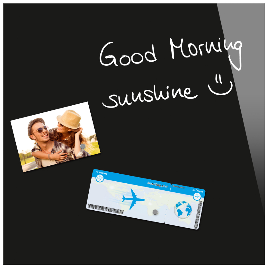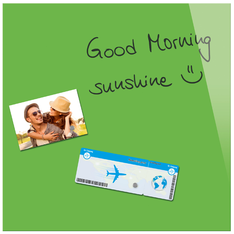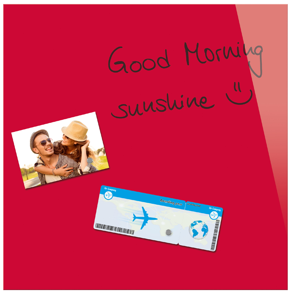 - bietet 2 Funktionen: beschriftbares Glasboard und magnetische Pinnwand in einem