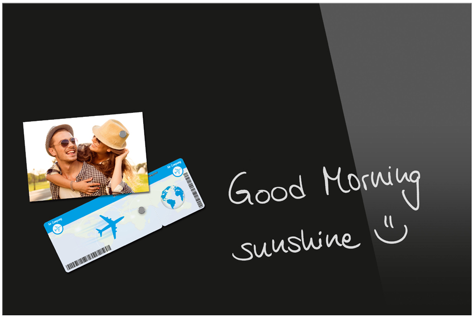 - bietet 2 Funktionen: beschriftbares Glasboard und magnetische Pinnwand in einem