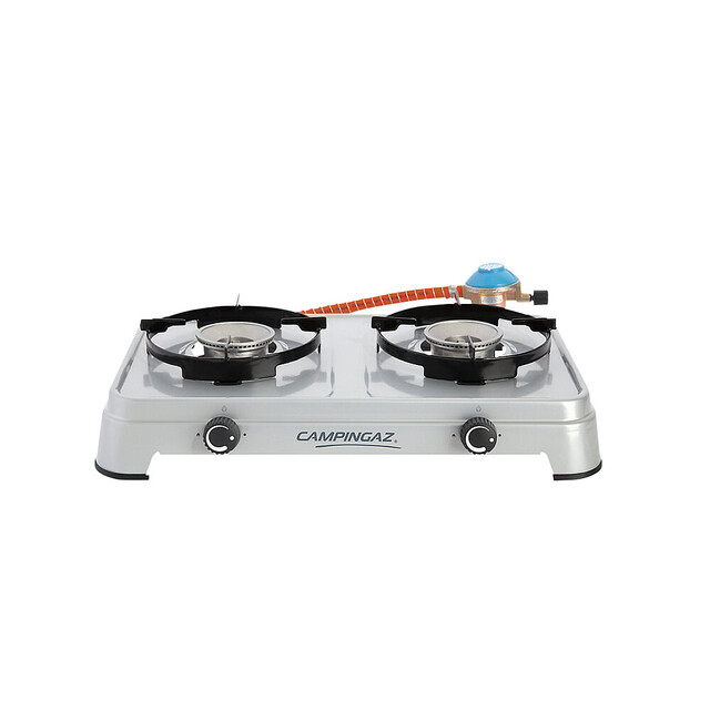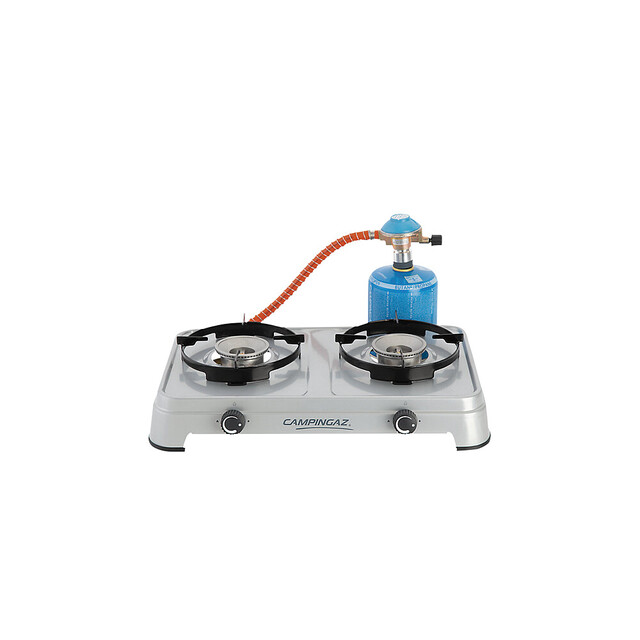 Der Camping Cook ist ein tolles Einsteigermodell für jeden Camper. Der robuste Kocher bietet eine exzellente Leistung und Portabilität. Da der Schlauch und Regulator bereits fest montiert sind, entfällt ein lästiges und umständliches Aufbauen. Man muss lediglich die Easy-Click Kartusche anschließen und schon kann es losgehen. Die beiden voneinander unabhängigen regulierbaren 1800 W Brenner bieten eine starke Leistung, sodass niemand lange auf das Essen warten muss. Die breite Basis mit Gummifüßen gewährleistet die nötige Stabilität während dem Kochen. Selbst die Reinigung ist dank der emaillierten, abnehmbaren Topträger im Nu erledigt.