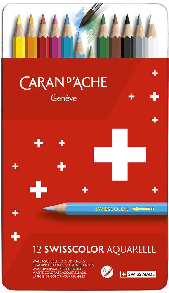 weiß, scharlachrotBuntstifte Swisscolor® Aquarelle, Metalletuis