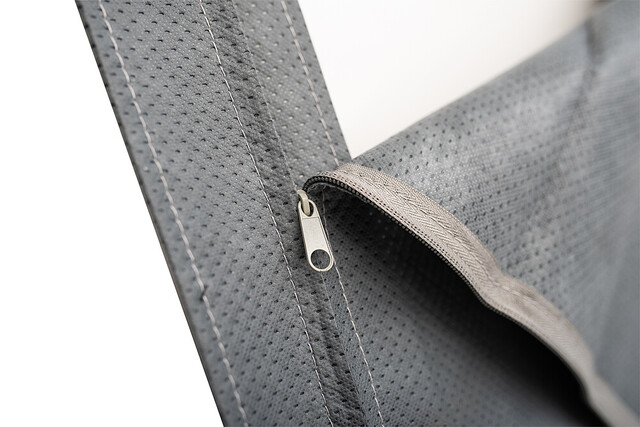 - Eingearbeitete Ösen ermöglichen das Abspannen mit Gummispannern