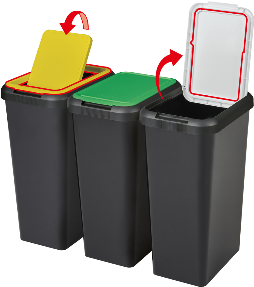 - durch die Auswahl verschiedener Deckelfarben ermöglichen sie den Nutzern eine besonders leichte Mülltrennung für ein effektives Recycling