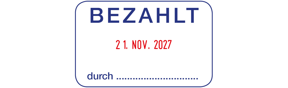 • 2-farbiger Druck - Abdruck Datum: rot / Lagertext: blau