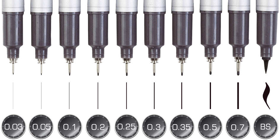 • Strichstärken sind sowohl am Schaft als auch auf den Verschlusskappen aufgedruckt