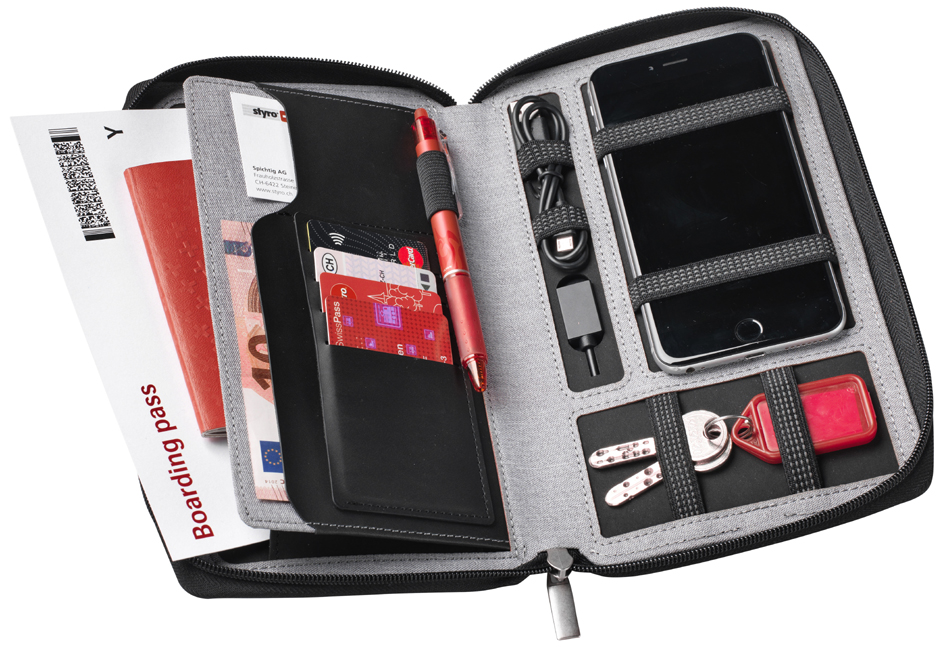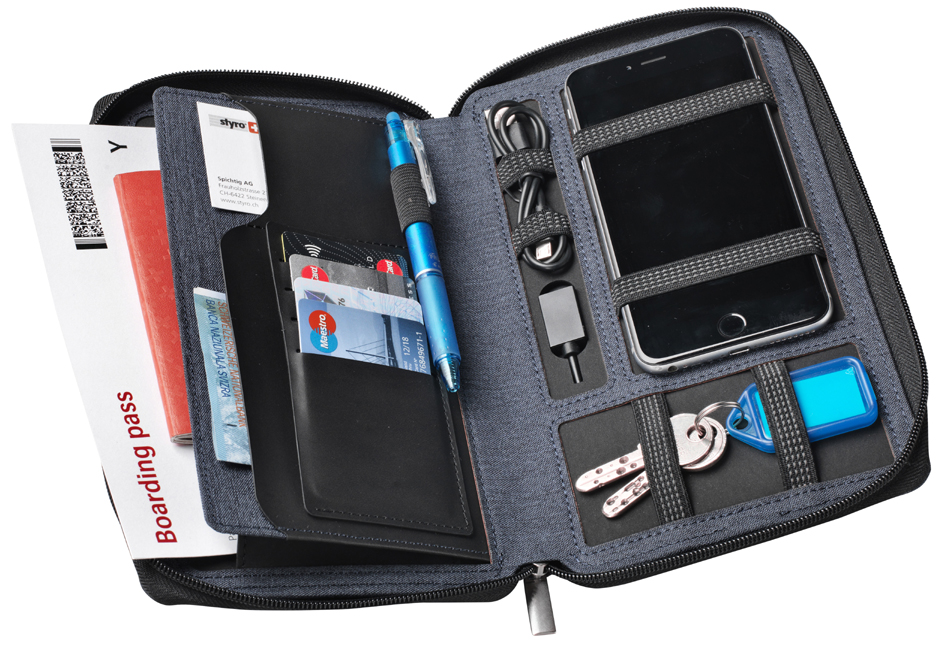 Reisemappe mit integrierter Powerbank (4000 mAh), inkl.