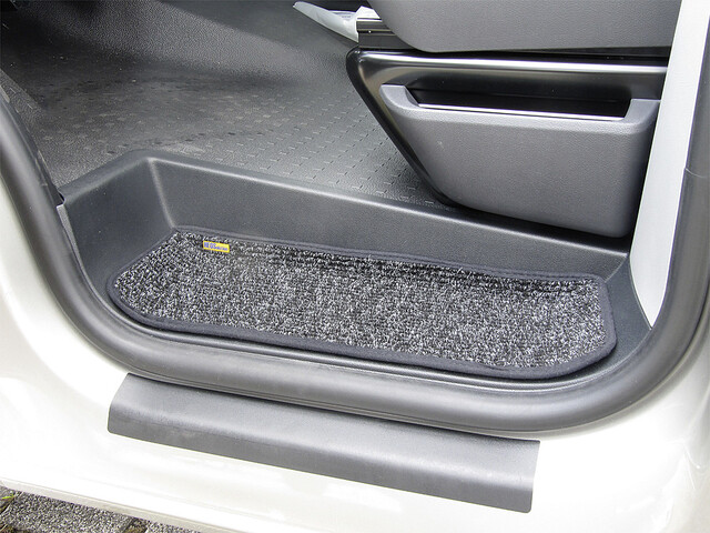 Fußmatte für den Einstiegbereich im Fahrerhaus und Einstieg an die Seitentür. Nadelfilz mit Einrippstruktur passgenau geformt. Anbringung mit Klettband, fertig vorgeklebt auf der Matte. Hält Schmutz und Wasser draußen.