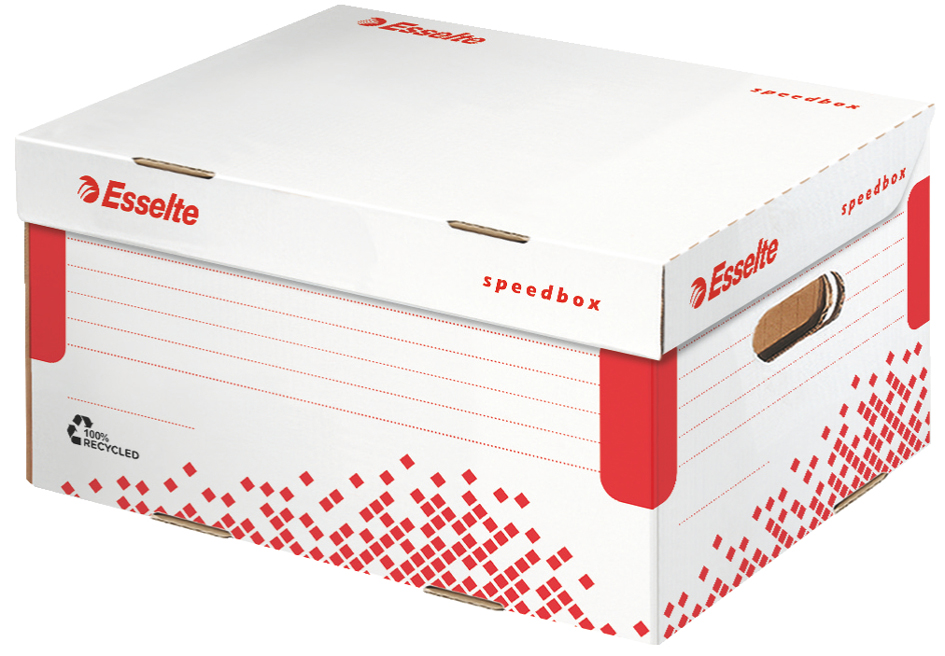 Esselte Archiv-Klappdeckelbox SPEEDBOX, DIN A4, weiß/rot,