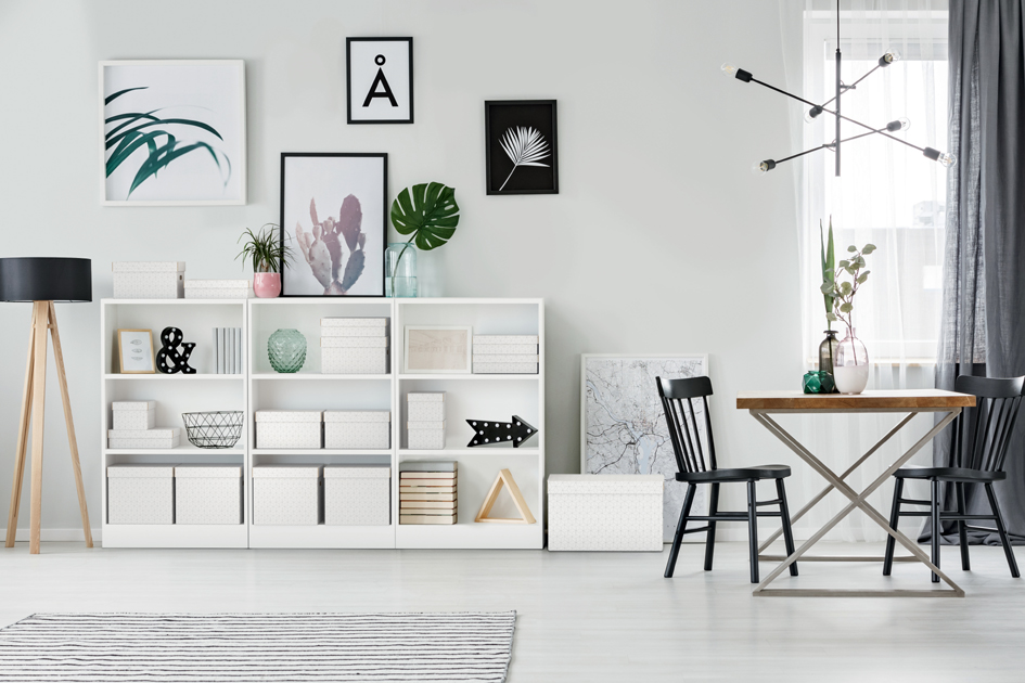 - zur Aufbewahrung in Regalen oder in kubischen, offenen Möbeln, um Gegenstände auffindbar aufzubewahren