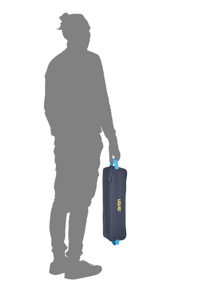 Für Stauraum sorgt der mitgelieferte Packsack, der ganz einfach am Gestänge befestigt werden kann und sich so im Handumdrehen in eine praktische Tasche verwandelt.