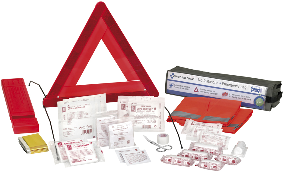 befüllt, 3 in 1 Notfalltasche enthält: Inhalt nach DIN