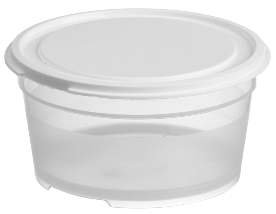 rund, Dose transparent, weißer Deckel, Material: PE-LD/PP,