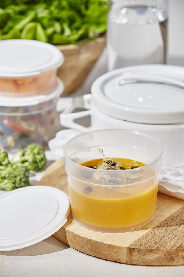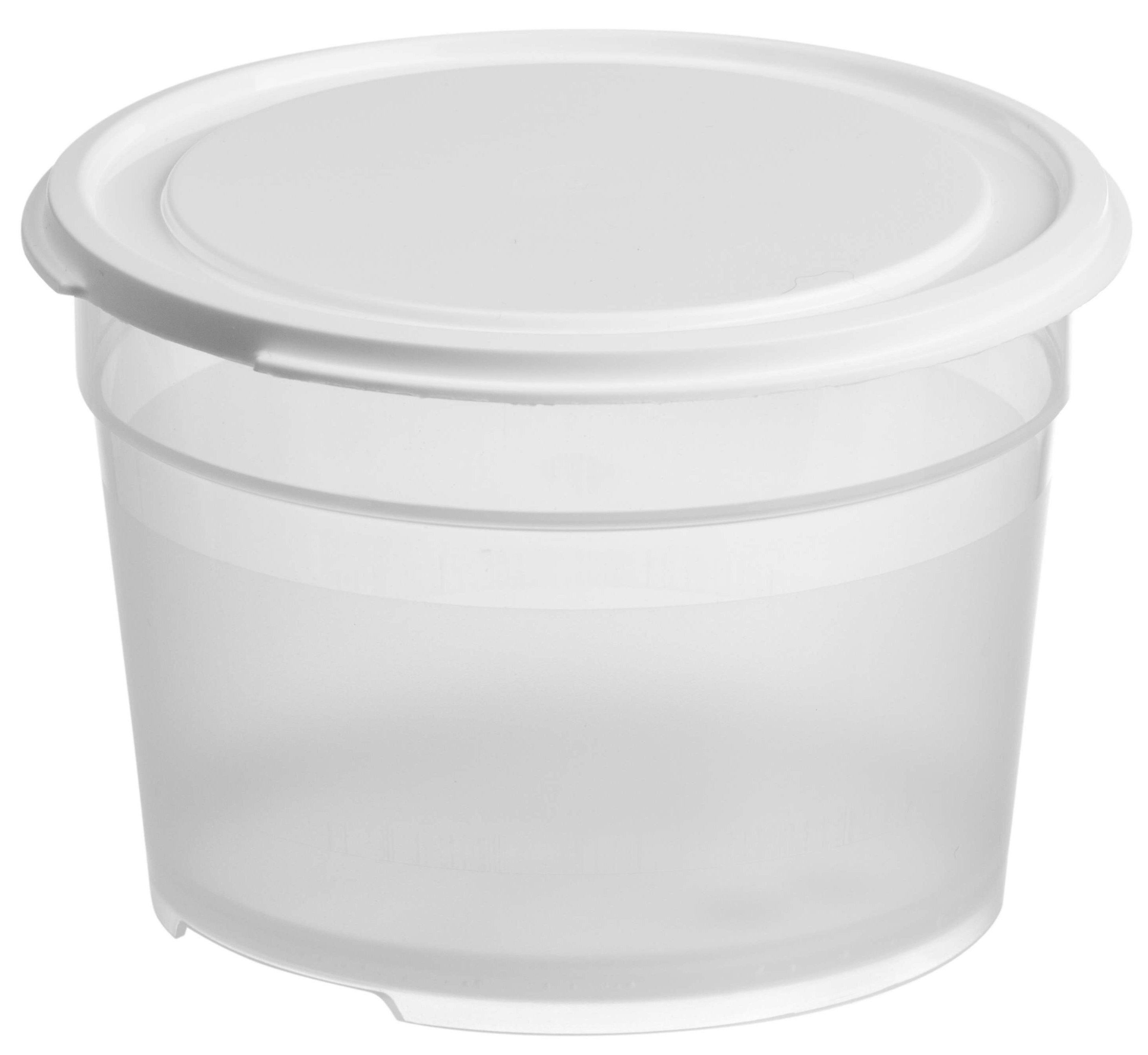 rund, Dose transparent, weißer Deckel, Material: PE-LD/PP,