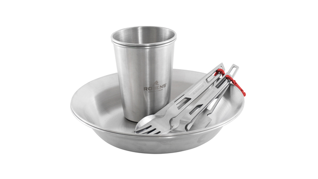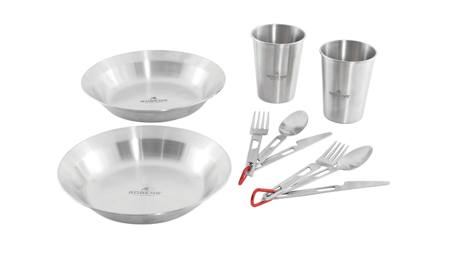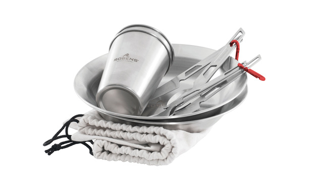 Geschirrset ROBENS Sierra Steel Meal Set je 2 x Teller, Becher, Besteck inkl. Tasche