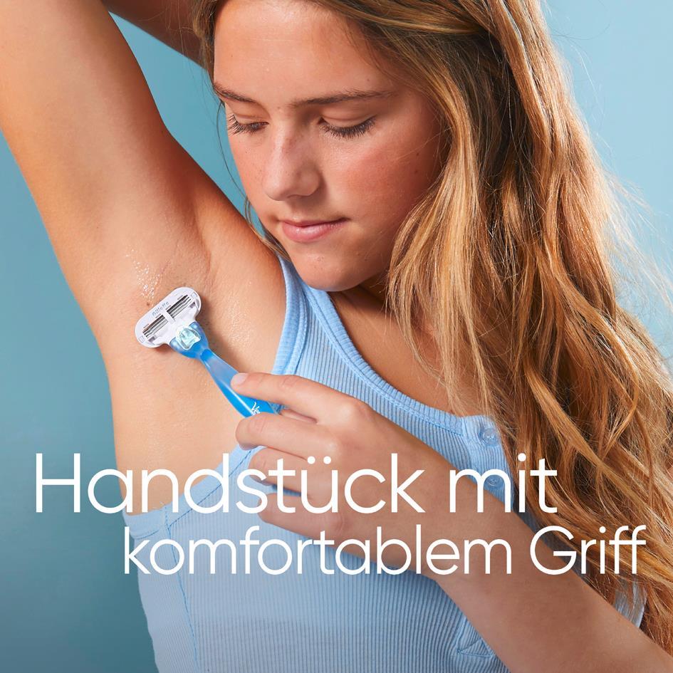 • inklusive blauem Haltbarkeitsindikator, der verblasst sobald die Klingen nicht mehr optimal rasieren
