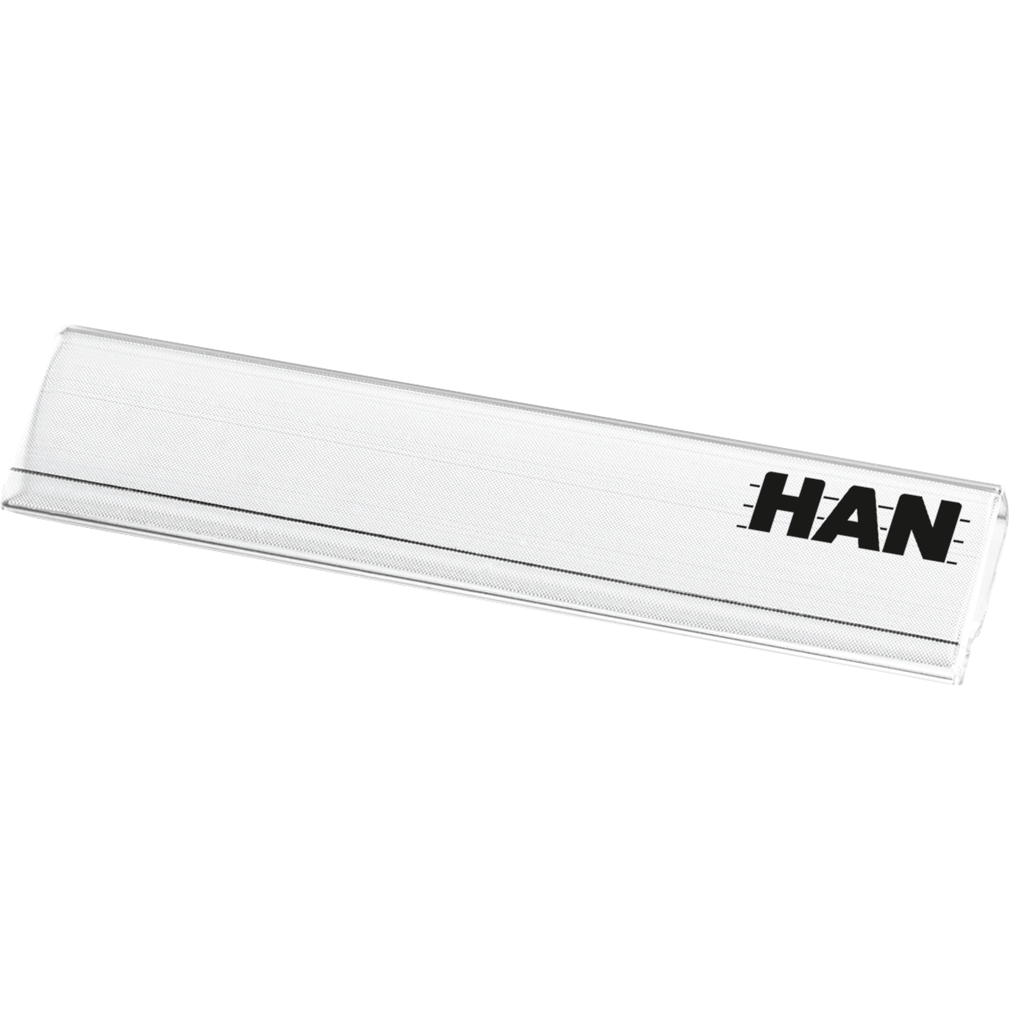 Beschriftungsclip zum Aufstecken inklusive Papierbeschriftungsschild. Die professionelle Beschriftungsmöglichkeit für viele HAN Produkte. Verwendbar für HAN Briefablagen (Artikel Nummern: 1024, 1025, 1046, 1047, 10260, 1026-X, 1027-X, 10271, 10278), Schubladenboxen (Artikelnummern: 1401, 14018, 1450, 14508) und Stehsammler (Artikelnummern: 1600, 1601, 1602, 1603, 1604, 16018). Mit Beschriftungsbogen. Made in Germany. Außenmaße (B x H): 62 x 14 mm. Material: Hart-PVC. Farbe: transparent.