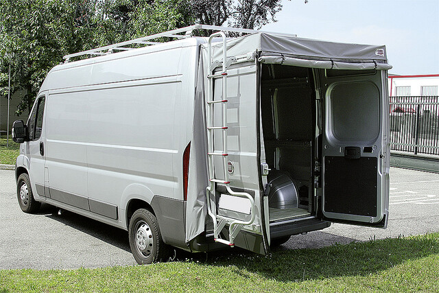 Sonnendach für die Hecktüren des Fiat Ducato, Citroën Jumper und Peugeot Boxer H2 ab 06/2006 und Mercedes Sprinter H2 ab 2006 (bis 2008).