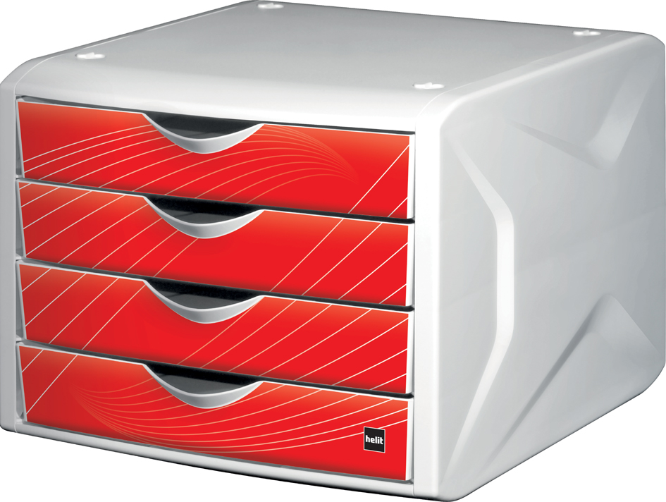 4 Schübe, aus bruchfestem Polypropylen, Gehäusefarbe: weiß,