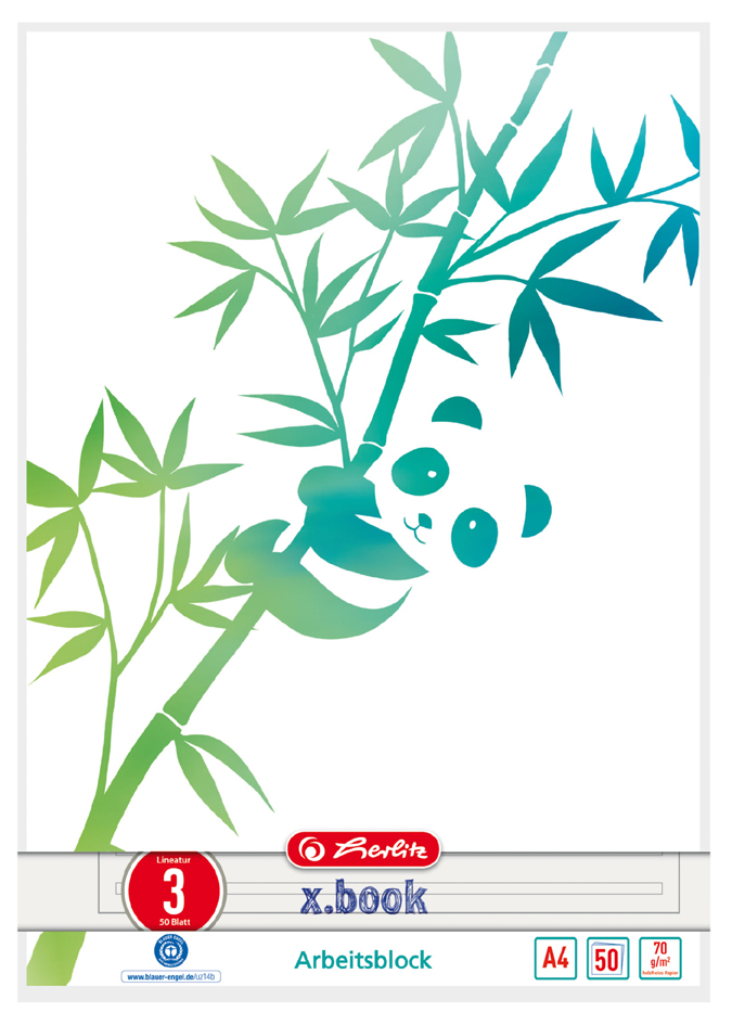 herlitz Arbeitsblock GREENline DIN A4, 50 Blatt, Lineatur 2