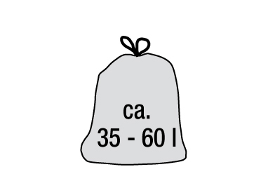 • passende Müllbeutel für 10 Liter: 30-35 Liter Fassungsvermögen