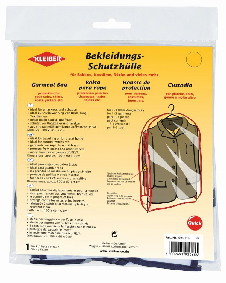 KLEIBER Bekleidungs-Schutzhülle, kurz, transparent