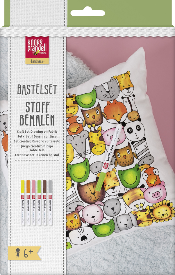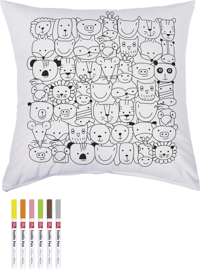• Inhalt: 1 Kissenhülle, 6 dünne Stoffmalstifte, Anleitung