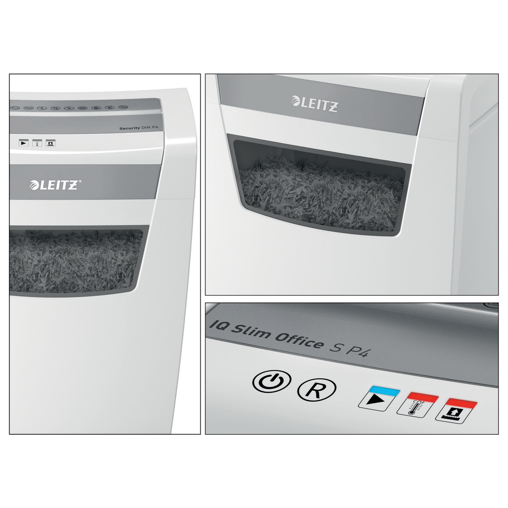 LEITZ-Aktenvernichter IQ Office S P4 - Partikelschnitt, 12 Blatt, weiß