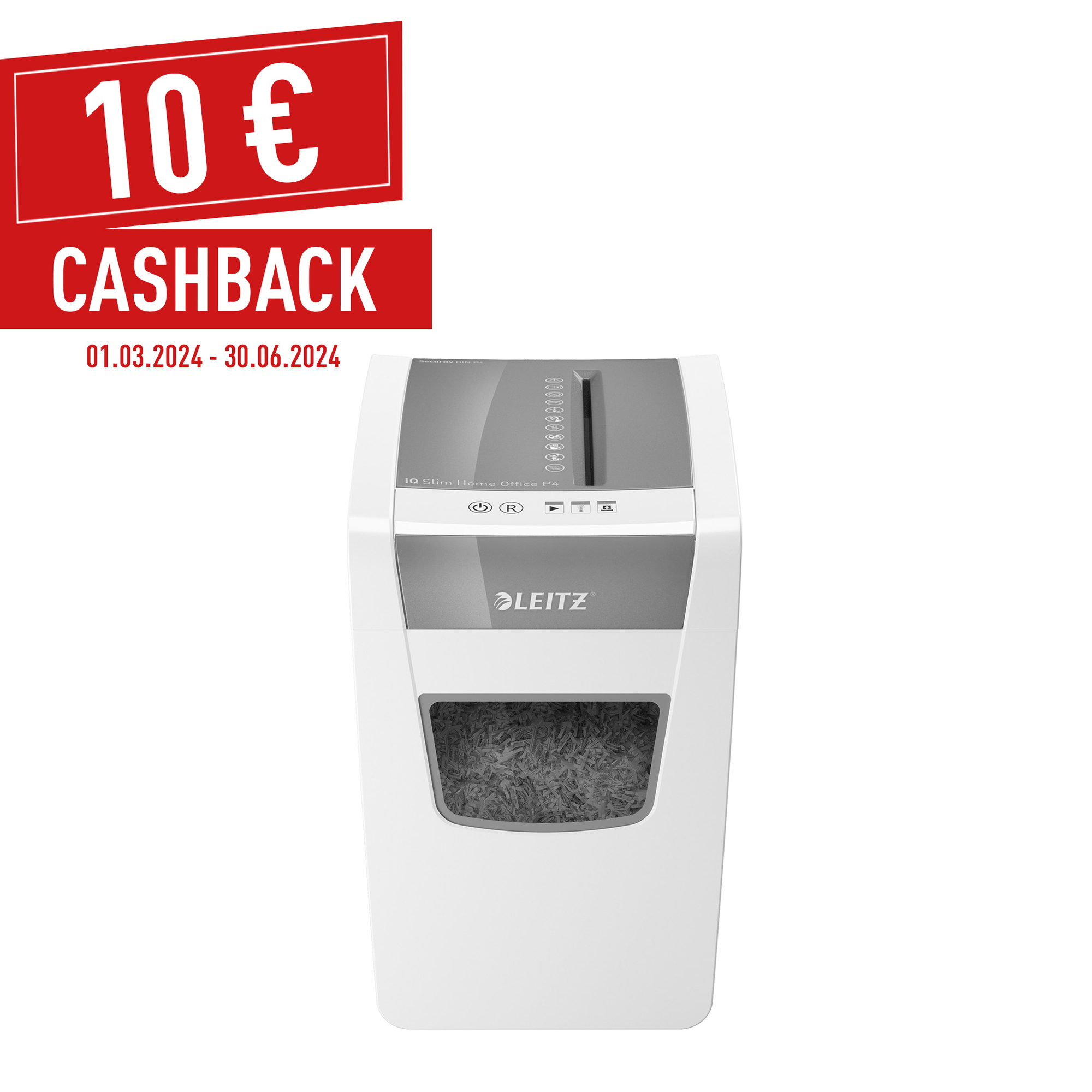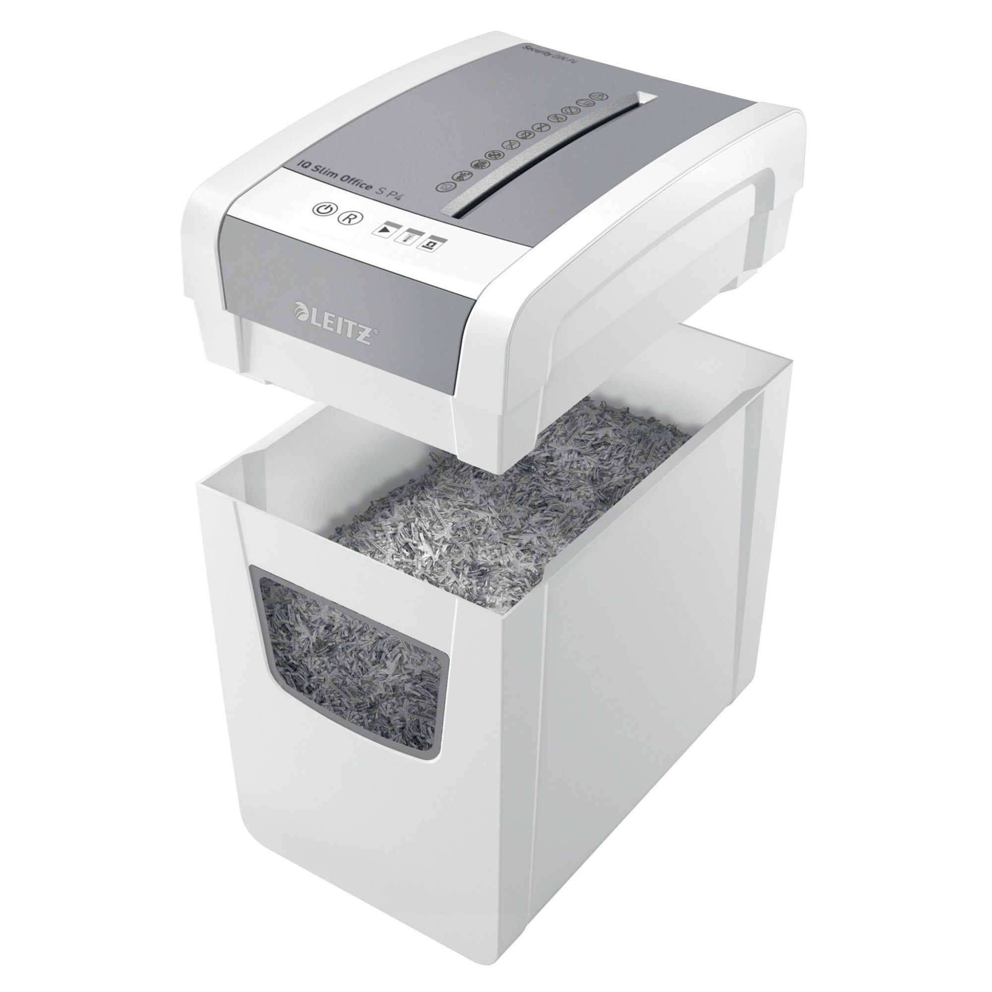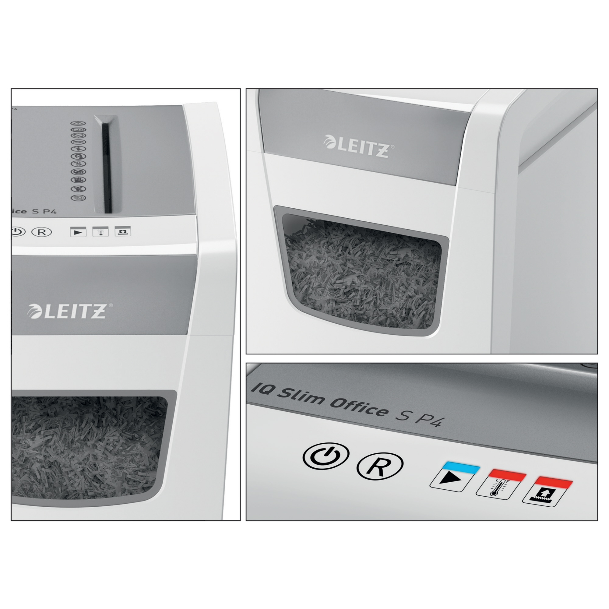 LEITZ-Aktenvernichter IQ Slim Office S P4 - Partikelschnitt, 12 Blatt, gau/weiß