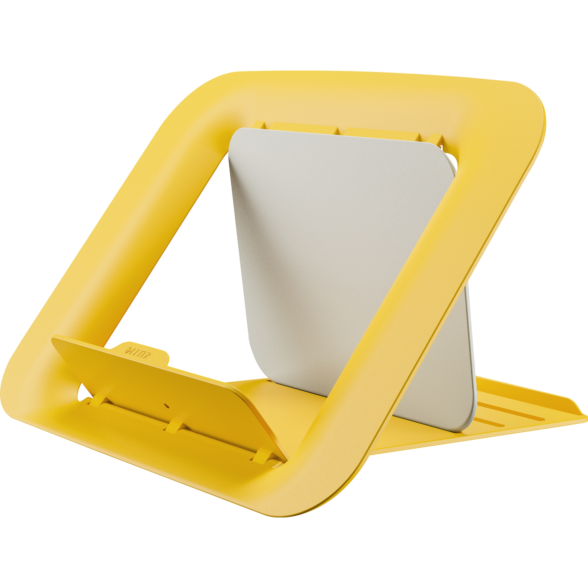 Leitz Laptopständer Ergo Cosy. Höhenverstellbar. Für Standard-Laptops. Für Arbeiten im Sitzen oder Stehen und zur Unterstützung des aktiven Arbeitens. 4 Neigungswinkel möglich. Mit gummierten Elementen und einem integrierten Halter für sicheren und stabilen Halt des Laptops. Laptopständer fördern durch ihre Position den Luftstrom und schützen den Akku und andere Komponenten vor Überhitzung. Flach zusammenklappbar bei Nichtgebrauch. Dieses Produkt sollte mit einer externen Tastatur und Maus verwendet werden (separat erhältlich). Maximale Laptopgröße: 17". Material: ABS Kunststoff, Gummi, Silikon. Format: 312 x 50 x 247 mm. Gewicht: 0,38 kg. Farbe: gelb.