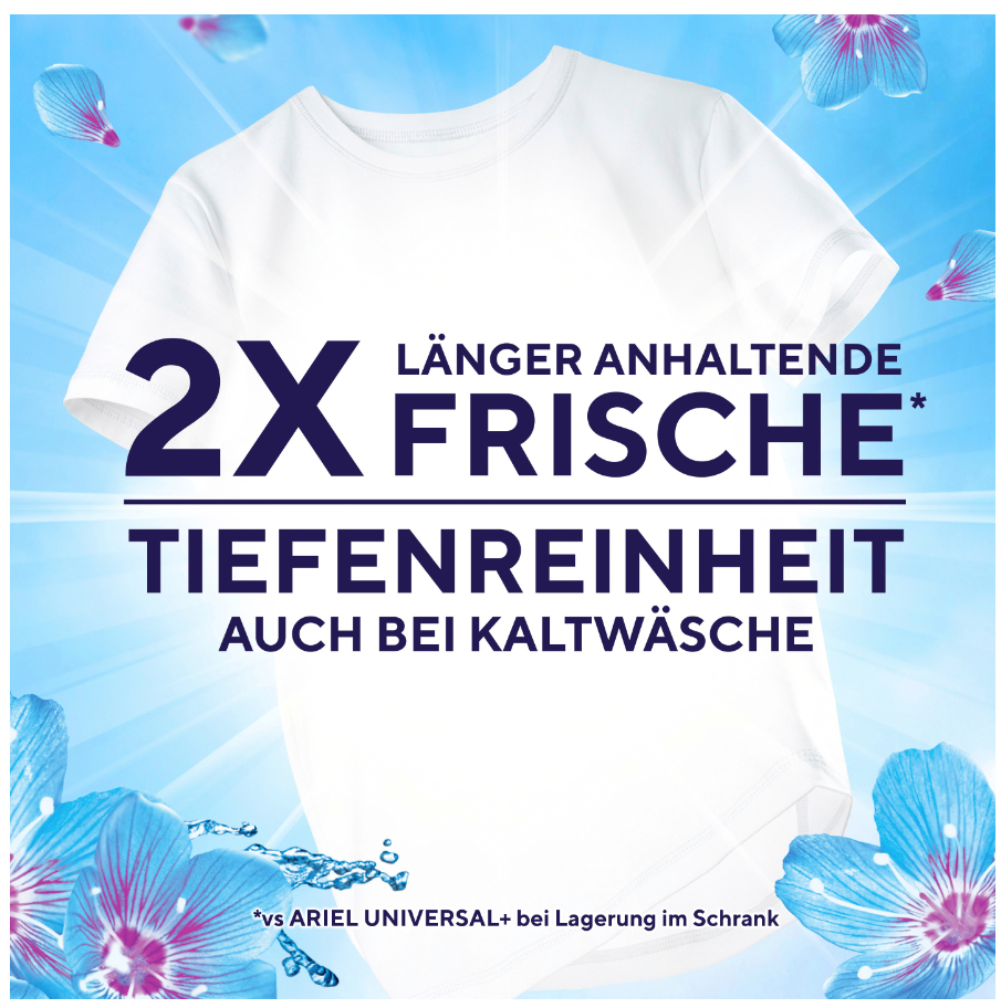 • bis zu 2-mal länger anhaltende Frische (gegenüber Ariel Universal+ bei Lagerung im Schrank)