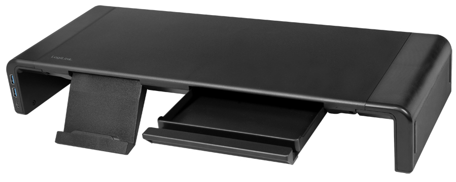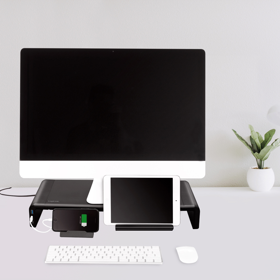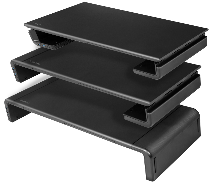 LogiLink Monitorständer, Breite einstellbar, 3x USB, schwarz