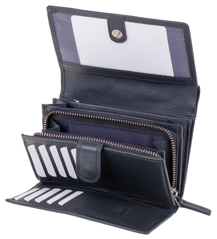 • Ausstattung: 12 Kartenfächer, Netzfach, 3 EInschubfächer, Reißverschlussfach, 2 weitere große Fächer mit 4 Kartenfächern und 2 Einschubfächern, ein Scheinfach, doppeltes Münzfach