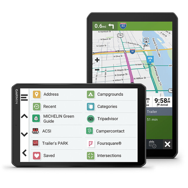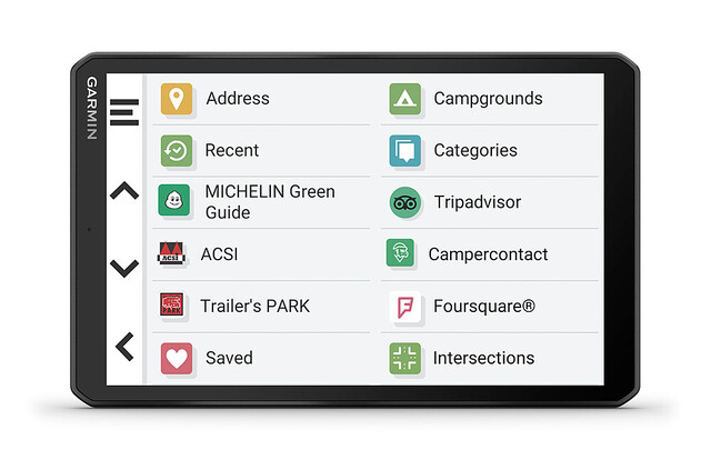 Der Camper 895 verfügt über ein 8 Zoll HD-Touchdisplay sowie über eine Magnethalterung, fahrzeugspezifische Routenführung, updatefähige Strassenkarten (Europa & Südafrika - sowie als Download via Garmin Express: Afrika, Naher Osten, Nord-/Südamerika, Australien und Neuseeland) mit Umweltzonen und die Fahrerassistenz für Hinweise vor scharfen Kurven, Seitenwinden und mehr. Neben der umfangreichen Camper-Datenbank stehen dir auch jederzeit Empfehlungen von TripAdvisor und Michelin zur Verfügung.