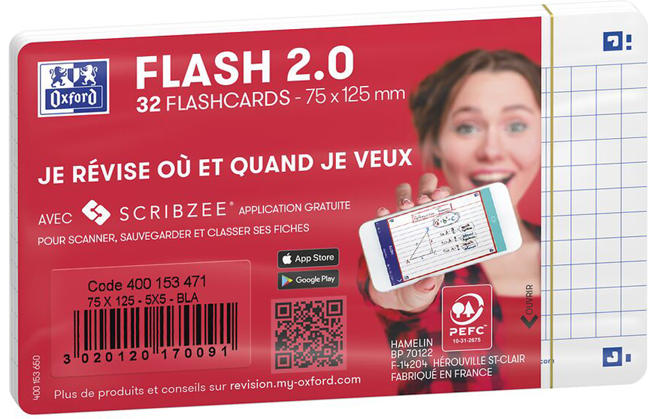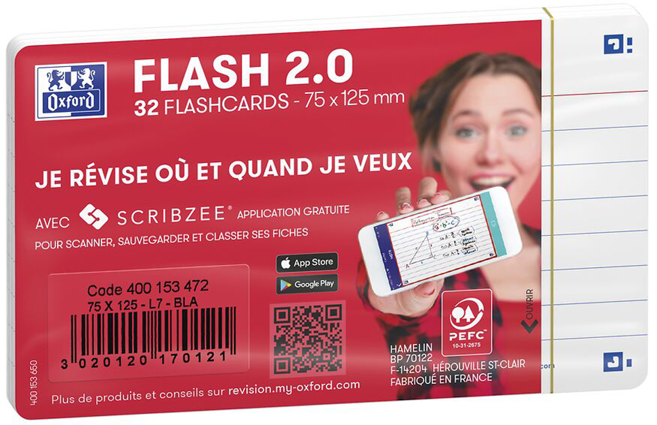 Oxford Karteikarten Flash 2.0, 75 x 125 mm, weiß