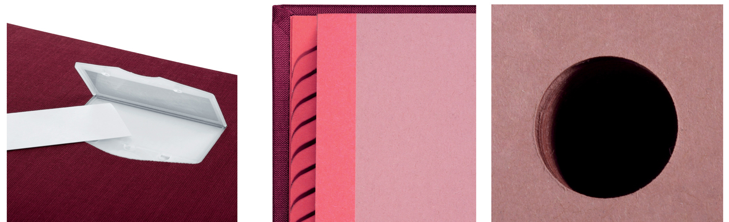 • hochwertiger rosa Löschkarton mit 3 Schaulöchern im Buchblock