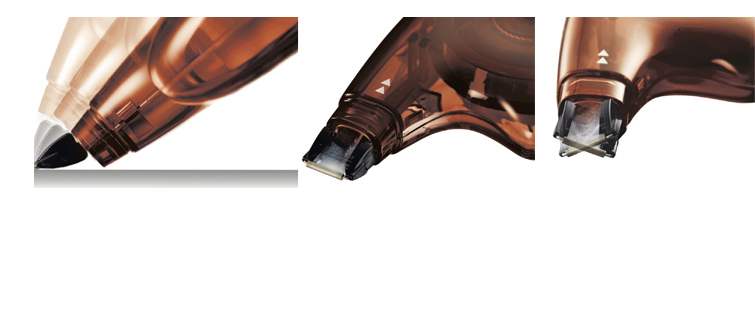• mehrwinkliger, flexibler Kopf hält das Band fest auf der Oberfläche und sorgt für ein sauberes, gleichmäßiges Korrigieren