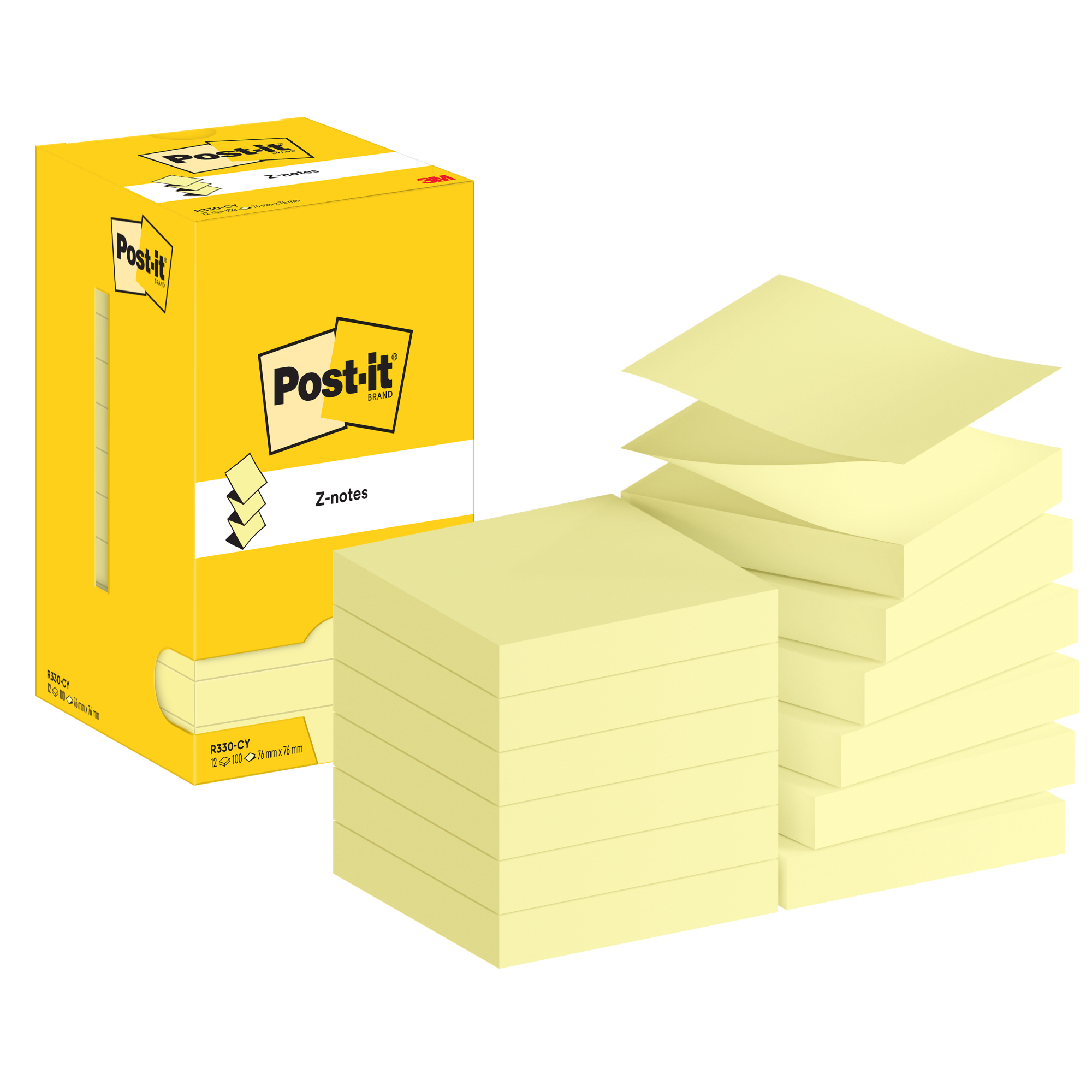 POST-IT-Haftnotizblock Z-Notes - 76 x 76 mm, gelb, 12x 100 Blatt Karton
