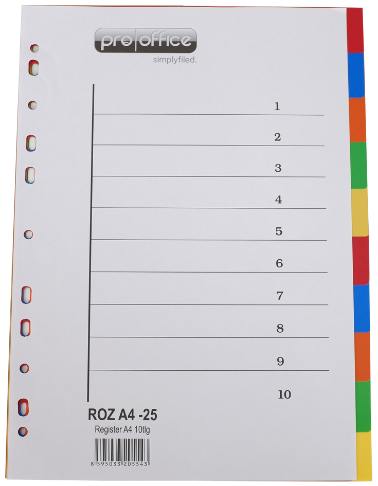 (Neu: 100810139 / Alt: 10071942-002)Kunststoff-Register, mehrfarbig, DIN A4