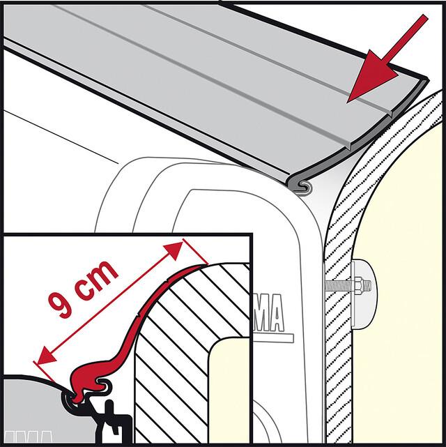 Abdichtung zur Montage zwischen Markise und Fahrzeug.