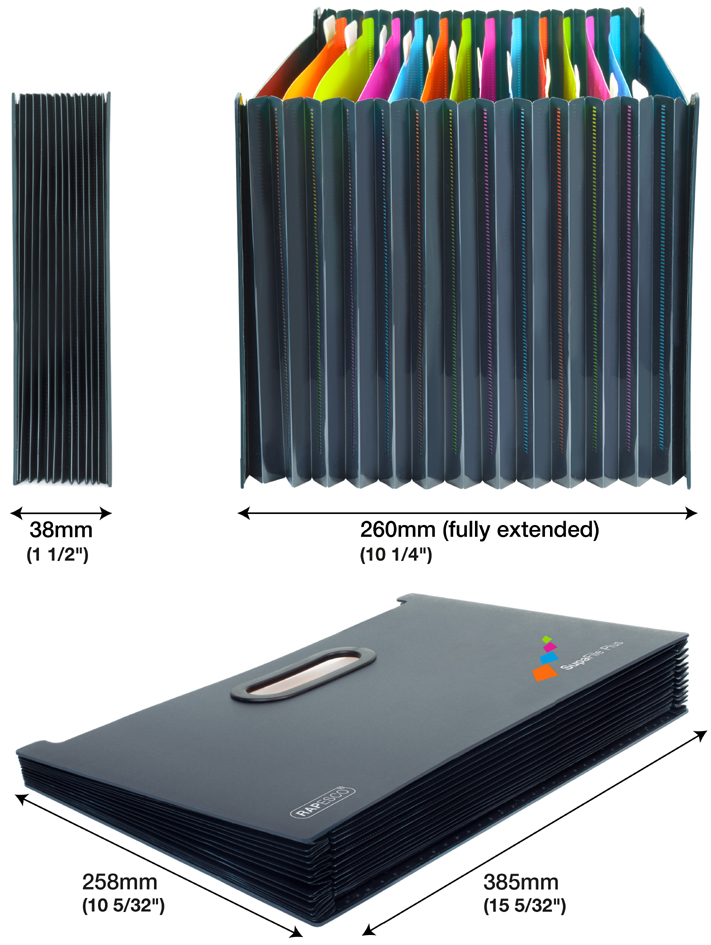 - Supafile Plus: zum Sortieren und Transportieren von gebündelten Dokumenten in z.B. Sichthüllen und Umschlägen