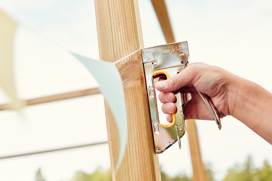 - zur Befestigung dünner Materialien wie Textilien, Papier und Schilder (die nur kurze Klammern erfordern)