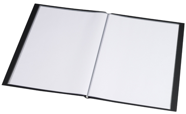 Blättern wie in einem Buch! Die Hüllen lassen sich einfach austauschen, die Mappe klappt nicht auf, die Seiten blättern nicht zurück. Platz- und gewichtssparender als alle andere Präsentationssysteme.