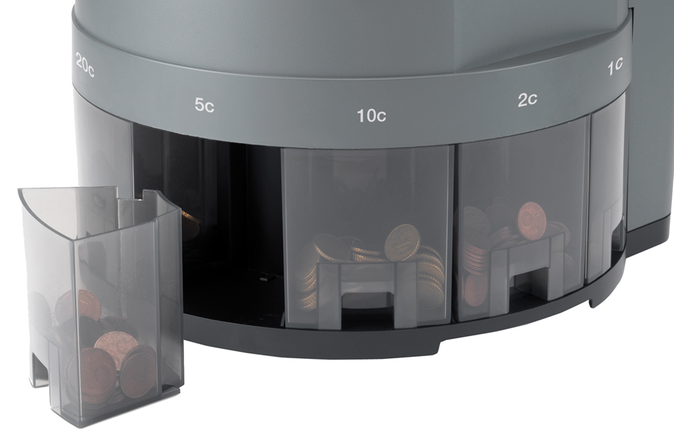 • Zählgeschwindigkeit: zählt und sortiert 500 Münzen pro Minute