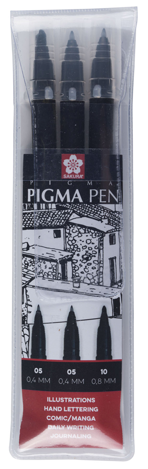 SAKURA Faserschreiber PIGMA PEN, 3er Etui, schwarz