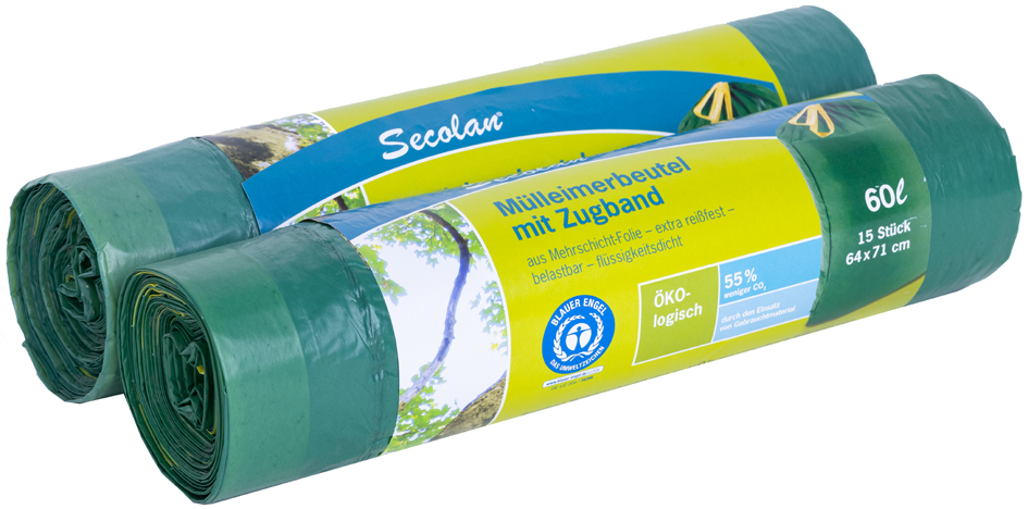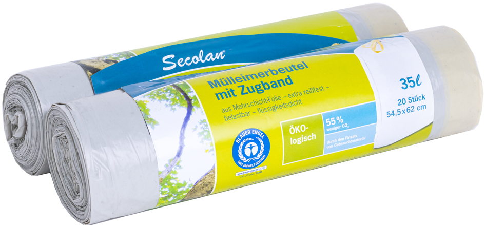 Secolan Mülleimerbeutel, mit Zugband, naturweiß